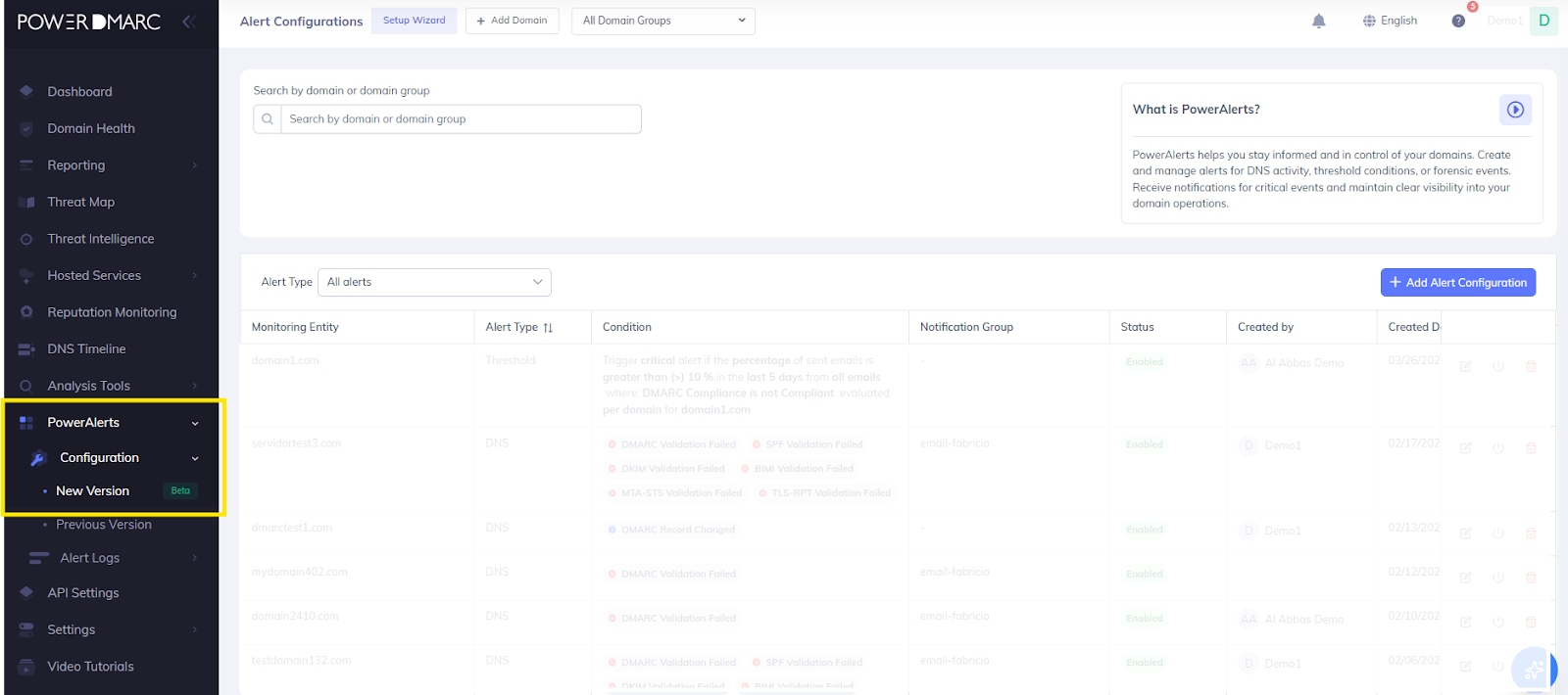 Ir a: PowerAlerts → Configuración → Nueva versión
